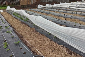 - Удобно стелить мульчу и укрывать грядку на зиму.