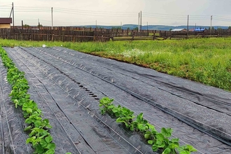 Мы перепробовали разные варианты и для своей фермы выбрали посадку на бугры (гребни) с однорядной схемой. Высота бугров примерно 12-15 см. Шаг перфорации 15 см.
