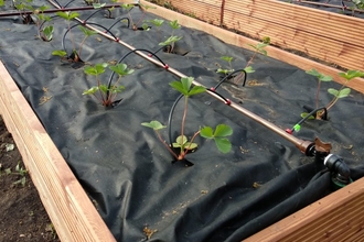 Этот способ выращивания клубники подходит именно для наших коммерческих целей, поэтому шаг перфорации такой маленький. Кусты на грядке живут всего один год и в дальнейшем обновляются на новые.